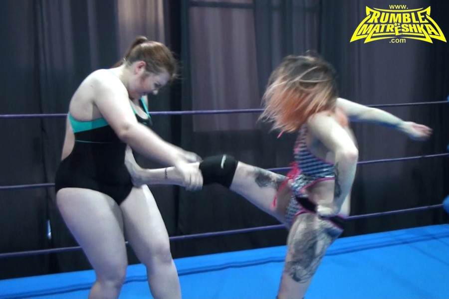 In this battle, which took place according to the rules of "2 of 3 falls", the girls used Head Lock, Hairpulling, Punches elbows, knees and feets, Leg Spread,